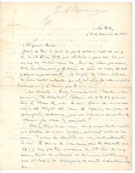 [Carta] 1908 dic. 11, Nueva York, Estados Unidos [a] Rubén Darío [manuscrito] José Santos Chocano.