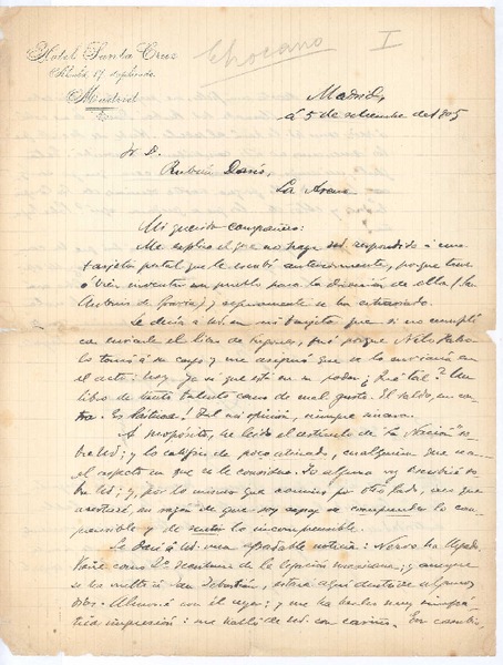 [Carta] 1905 sep. 5, Madrid, España [a] Rubén Darío [manuscrito] José Santos Chocano.