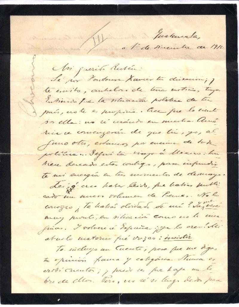 [Carta] 1910 dic. 1, Guatemala [a] Rubén Darío [manuscrito] José Santos Chocano.