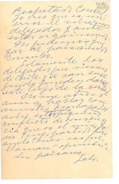 Grez, Alfonso - Mistral, Gabriela - Correspondencia - Manuscritos chilenos