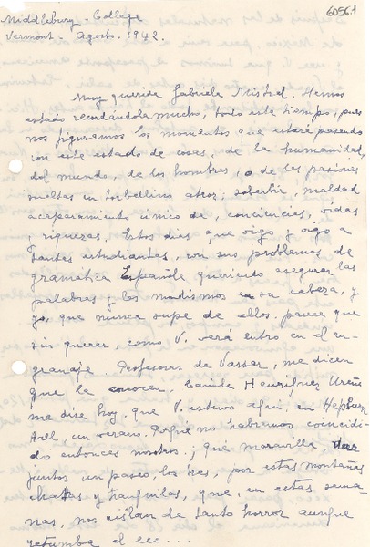 [Carta] 1942 ago., Vermont [a] Gabriela Mistral [manuscrito] Teresa de Díez-Canedo.