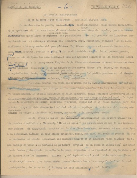 No es el cielo - Manuscritos chilenos - Reseñas de libros - Frank, Waldo