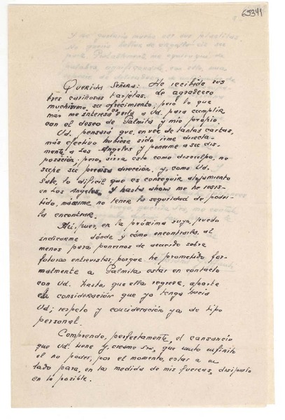 [Carta] 1946, Los Ángeles [a] Gabriela Mistral [manuscrito] Adriana Guffanti.