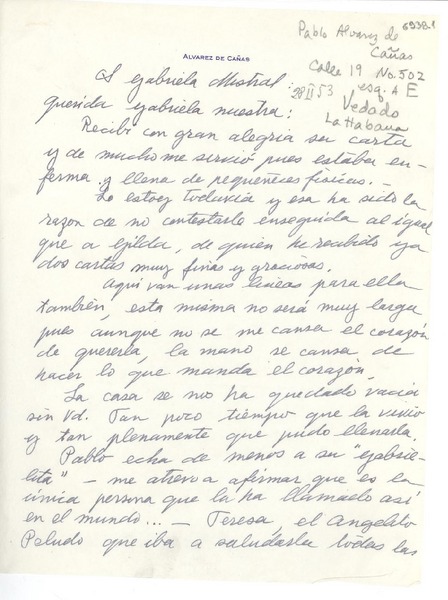 [Carta] 1953 feb. 28, La Habana, [Cuba] [a] Gabriela Mistral [manuscrito] Dulce María Loynaz.