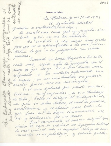 [Carta] 1953 jun. 10, La Habana, [Cuba] [a] Gabriela Mistral [manuscrito] Dulce María Loynaz.