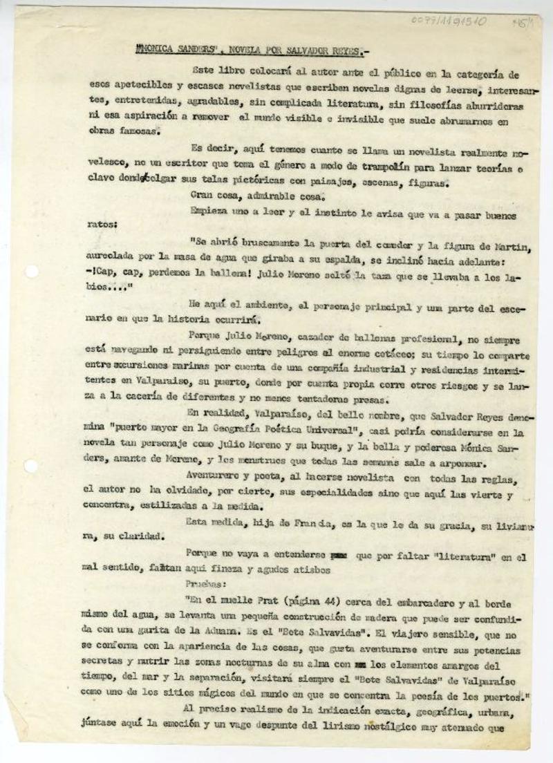 Mónica Sanders [manuscrito] Salvador Reyes.