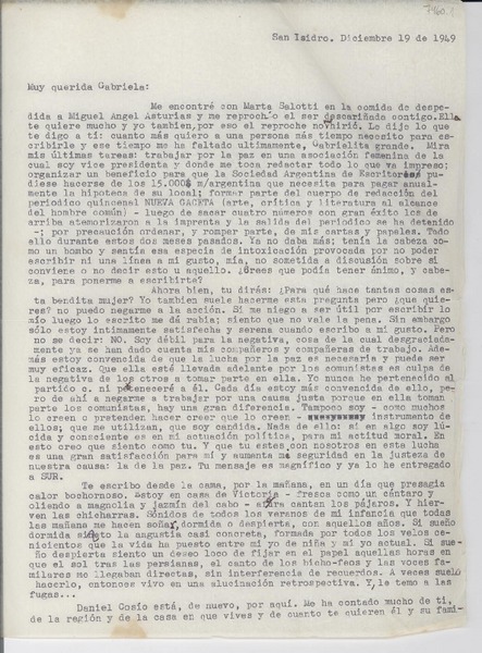 [Carta] 1949 dic. 19, San Isidro, [Argentina] [a] Gabriela [Mistral] [manuscrito] María Rosa [Oliver].