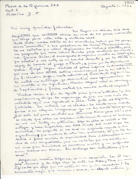 [Carta] 1946 ago. 1, México D. F. [a] Gabriela Mistral [manuscrito] María Rosa [Oliver].