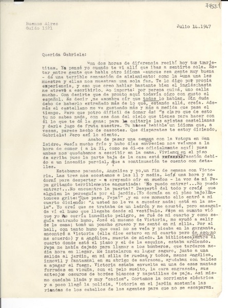 [Carta] 1947 jul. 14, Buenos Aires [a] Gabriela Mistral [manuscrito] María Rosa [Oliver].