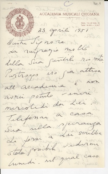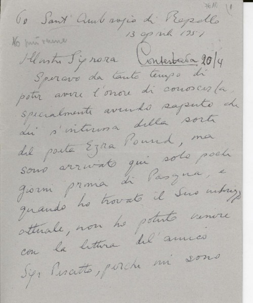 [Carta] 1951 abr. 23, [Italia] [a] [Gabriela Mistral] [manuscrito] Olga Rudge.