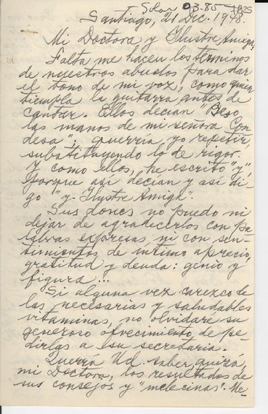 [Carta] 1948 dic. 21, Santiago [a] Gabriela Mistral [manuscrito] J. Saavedra.