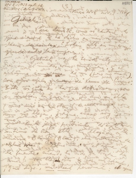 [Carta] 1948 nov. 9, Nueva York [a] Gabriela Mistral [manuscrito] Salarrué.