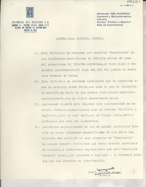 Aguirre Mac-Kay, Mario - Correspondencia - Mistral, Gabriela - Manuscritos chilenos