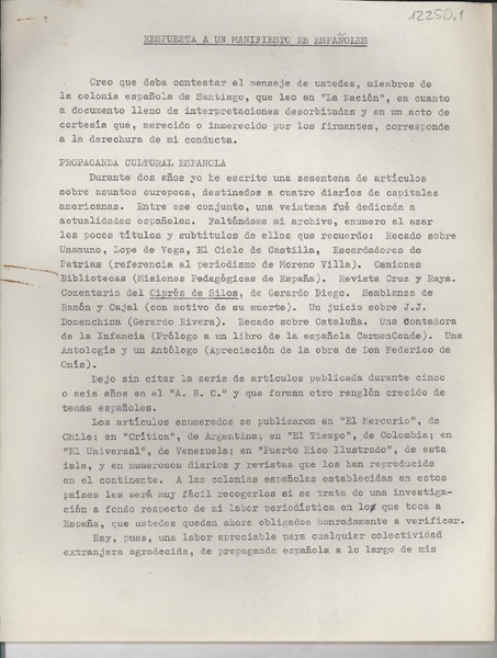 Respuesta a un manifiesto de españoles [artículo] Gabriela Mistral.