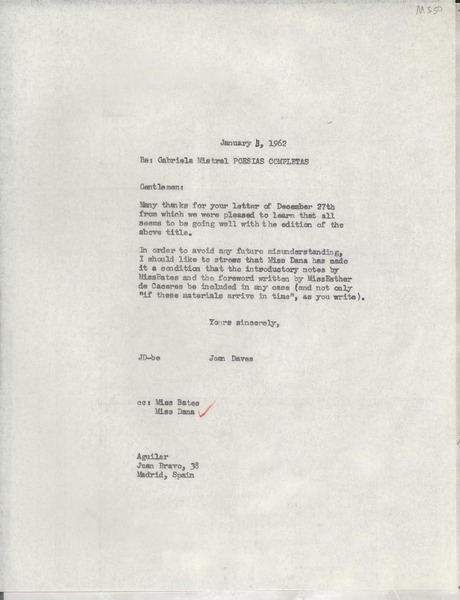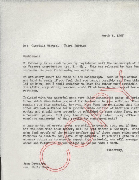 Manuscritos estadounidenses - Daves, Joan - Mistral, Gabriela - Correspondencia
