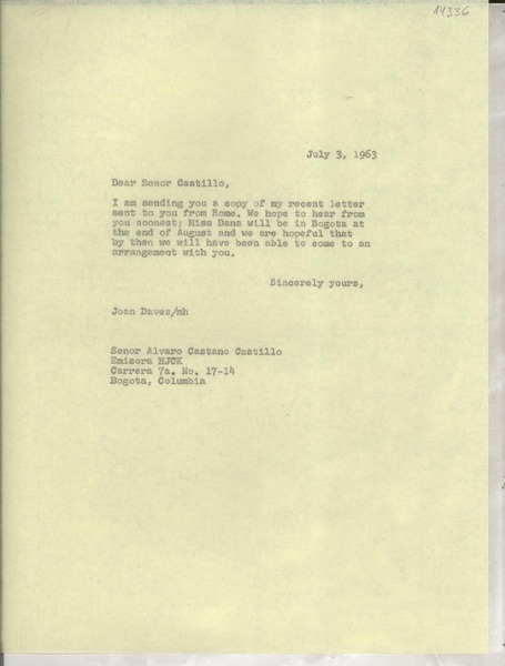 [Carta] 1956 Aug. 3, 112 East 19 Street, New York 3, N. Y., [EE.UU.] [a] Mrs. Doris Dana, 15 Spruce Street, Roslyn Harbour, L. I., New York, [EE.UU.] [manuscrito] Joan [Daves].