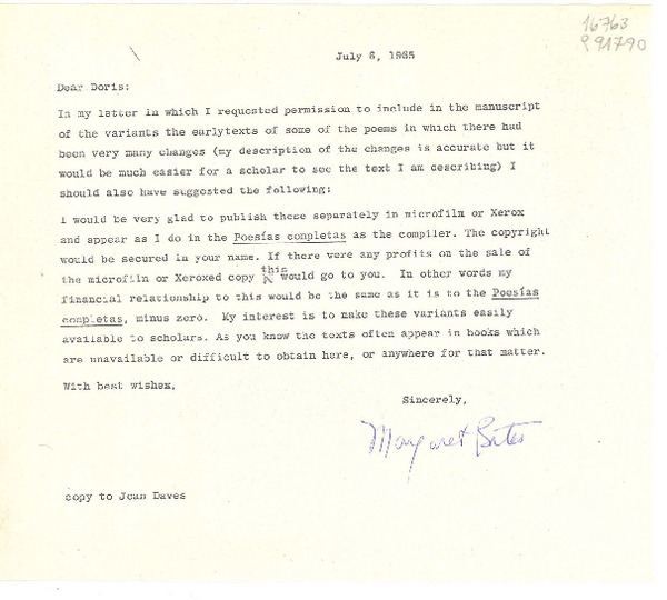 Giménez Siles, Rafael - Manuscritos mexicanos - Correspondencia - Daves, Joan