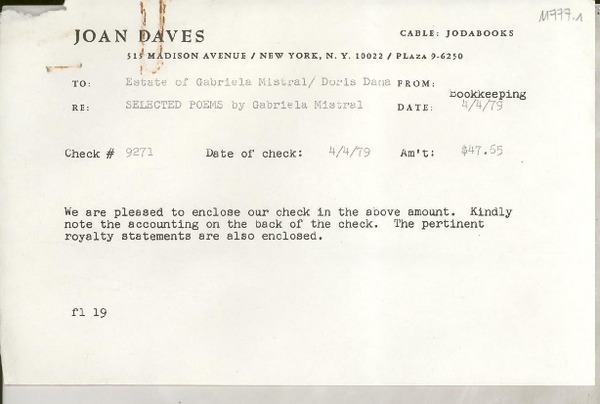 [Recibo] 1972 Apr. 17, New York, N. Y., [EE.UU.] [a] Johns Hopkins Press, Baltimore, Md., [EE.UU.] [manuscrito] Joyce Campe.