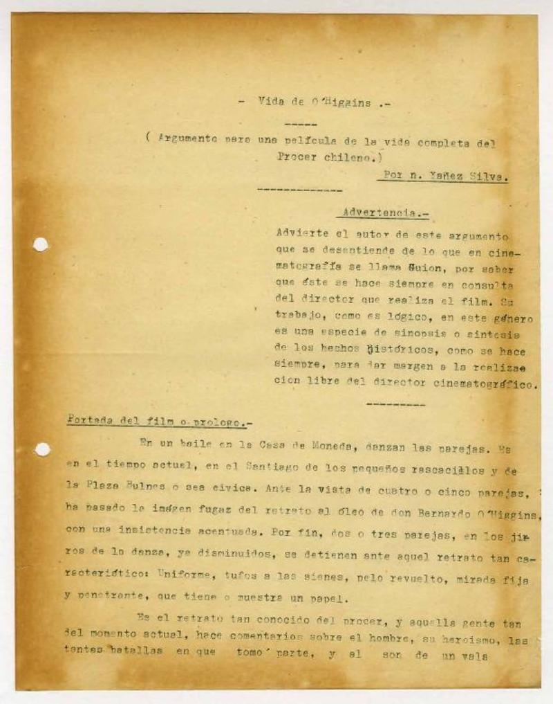 Vida de O'Higgins [manuscrito] Nathanael Yáñez Silva.