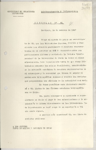 Circular, 1947 oct. 13, Santiago [manuscrito]