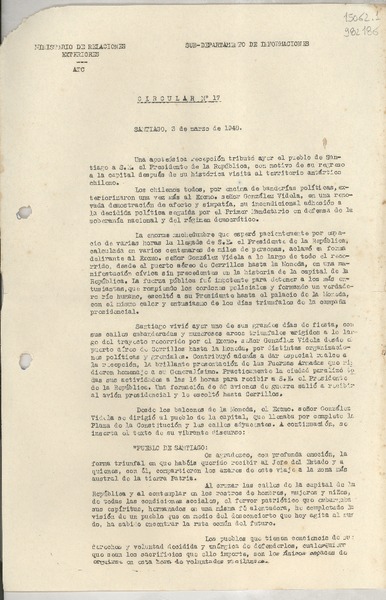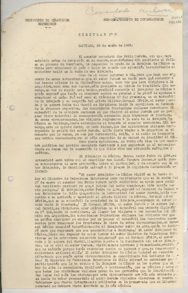 Circular N° 4, 1948 ene. 20, Santiago, [Chile] [a] Los Señores Jefes de Misión y Cónsules de Chile [manuscrito] [Germán Vergara Donoso].