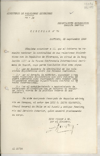 Circular N° 73, 1948 sept. 23, Santiago [manuscrito]