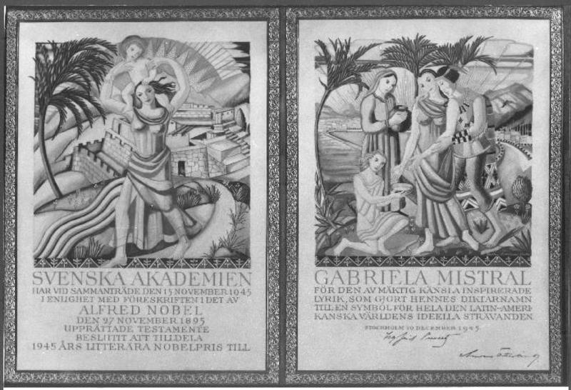 [Diploma] 1945 dic. 10, Estocolmo, Suecia <a> Gabriela Mistral [manuscrito] Svenska Akademien.