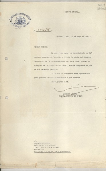 ![[Carta] 1947 mayo 16, Buenos Aires, [Argentina] [al] Cónsul de Chile Doña Gabriela Mistral, 1305, Buena Vista Street, Monrovia, California, EE.UU. de Norteamerica [Carta] 1947 mayo 16, Buenos Aires, [Argentina] [al] Cónsul de Chile Doña Gabriela Mistral, 1305, Buena Vista Street, Monrovia, California, EE.UU. de Norteamerica](channels-523_mime_jpg.gif)