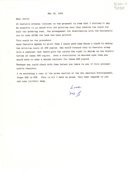 Dana, Doris - Correspondencia - Manuscritos estadounidenses - Bates, Margaret Jane - Soler, Amparo