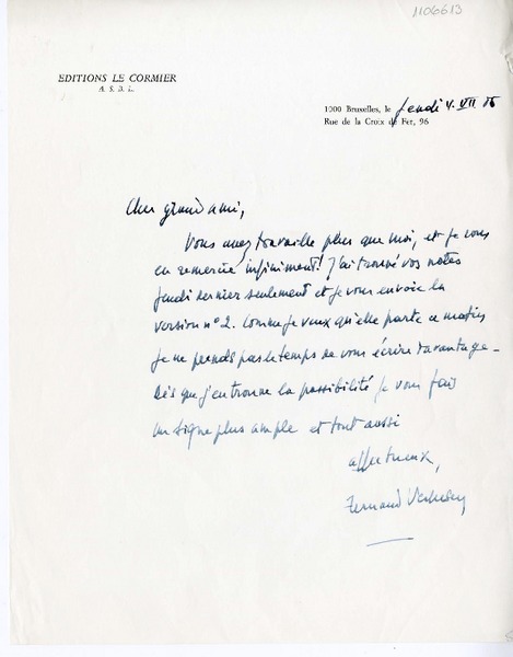 [Carta] 1985 julio 4, Bruxelles, Bélgica [a] Humberto Díaz -Casanueva [manuscrito] Fernand Verhesen.