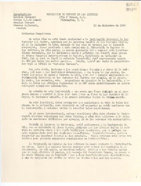 [Carta] 1949 dic. 13, Washington D. C., [Estados Unidos] [a] Estimadas compañeras [manuscrito] Heloise Brainerd.