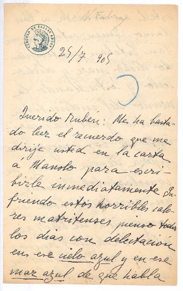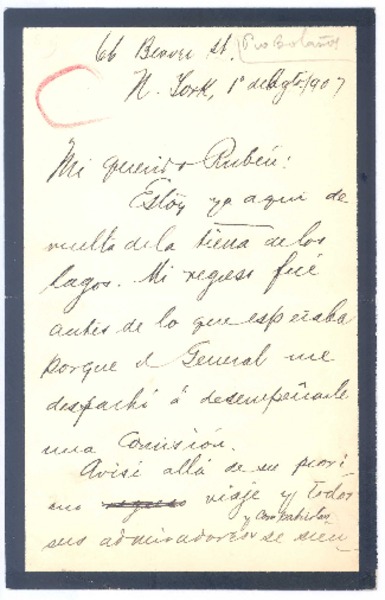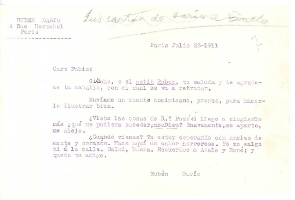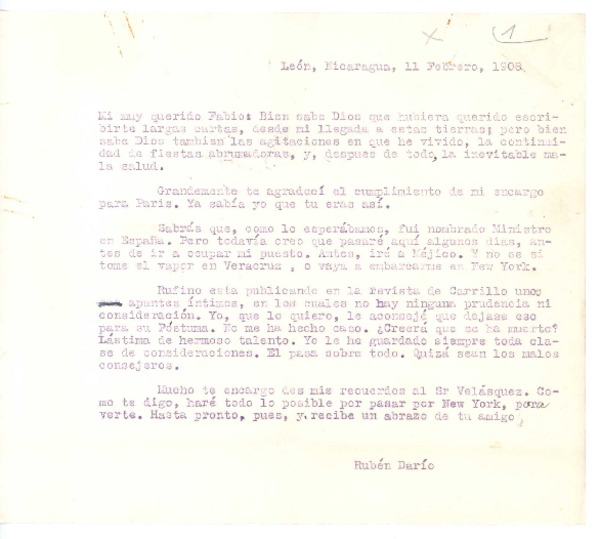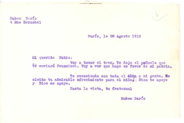 [Carta entre 1900 y 1916], España? <a> Rubén Darío [manuscrito] Fabio Fiallo.