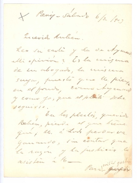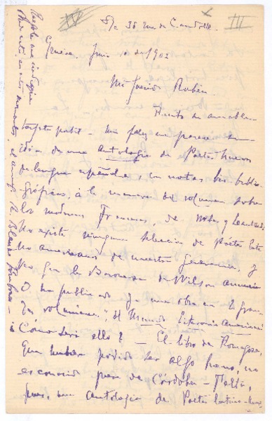 [Carta] 1903 feb. 6, Paris, Francia [a] Rubén Darío [manuscrito] Rufino Blanco-Fombona.