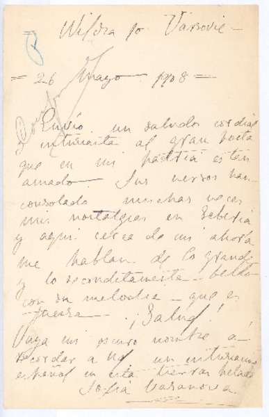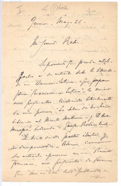 [Carta] 1902? mayo 26, Génova, Italia [a] Rubén Darío [manuscrito] Leopoldo Díaz.