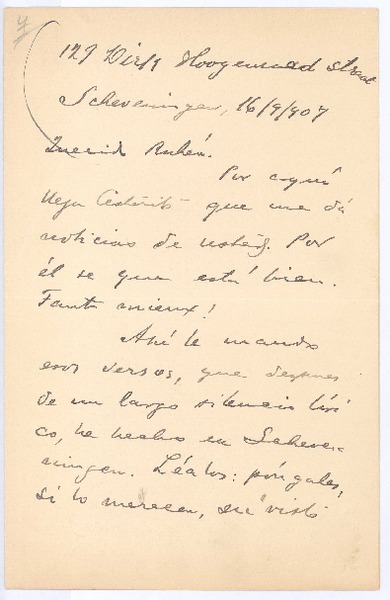 [Carta], C 1900 Madrid, España <a> Rubén Darío [manuscrito] Antonio de Hoyos.