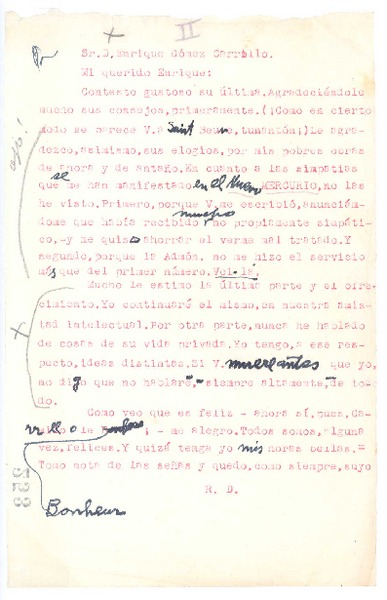 [Carta], 1898 ene. 11 Paris, Francia <a> Rubén Darío [manuscrito] Enrique Gómez Carrillo.