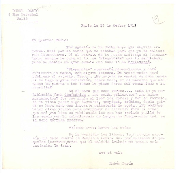 Fort, Paul - Poetas nicaragüenses - Manuscritos franceses - Autores franceses - Darío, Rubén - Correspondencia