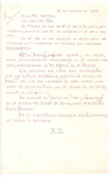 [Carta], 1900 Buenos Aires, Argentina <a> Rubén Darío [manuscrito] Eduardo Schiaffino.