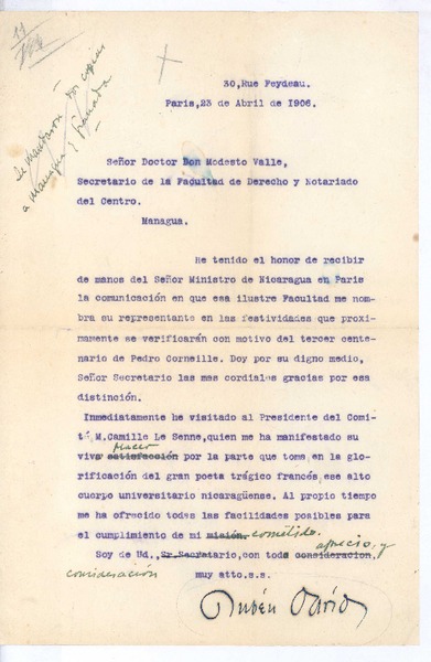 Murillo Cornado, Gerardo - Correspondencia - Darío, Rubén - Autores mexicanos - Manuscritos mexicanos - Poetas nicaragüenses