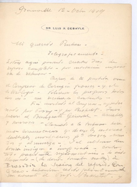 GRANMONTAGNE, F. - Poetas nicaragüenses - Manuscritos españoles - CORRESPONDENCIA - Correspondencia - Darío, Rubén