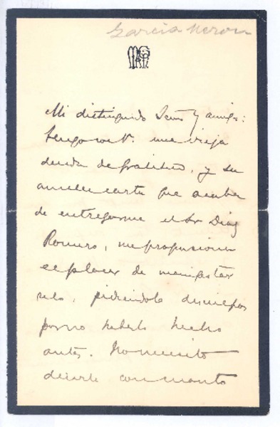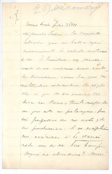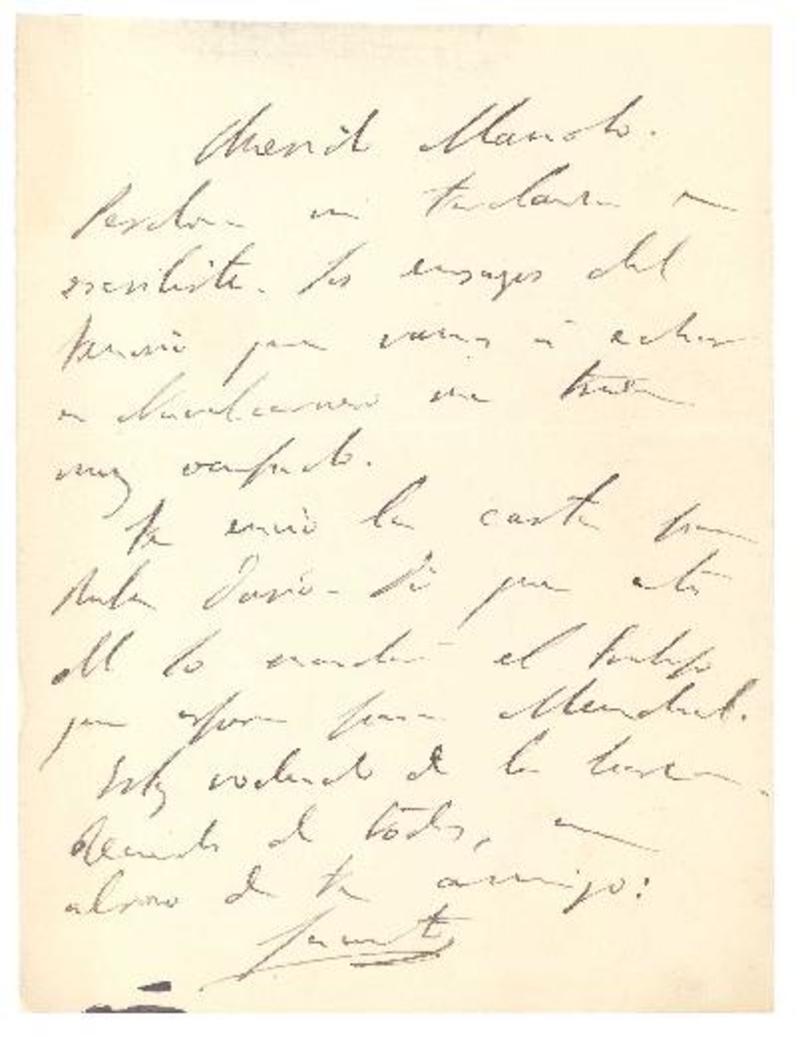 [Carta] c.1900, Francia? [a] Jérónimo Ramírez [manuscrito] Rubén Darío.