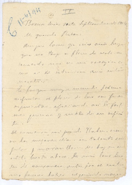 [Carta] 1904 septiembre 10, Buenos Aires, Argentina [a] Rubén Darío [manuscrito] Eugenio Díaz Romero.