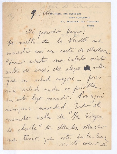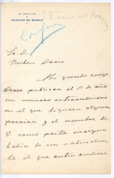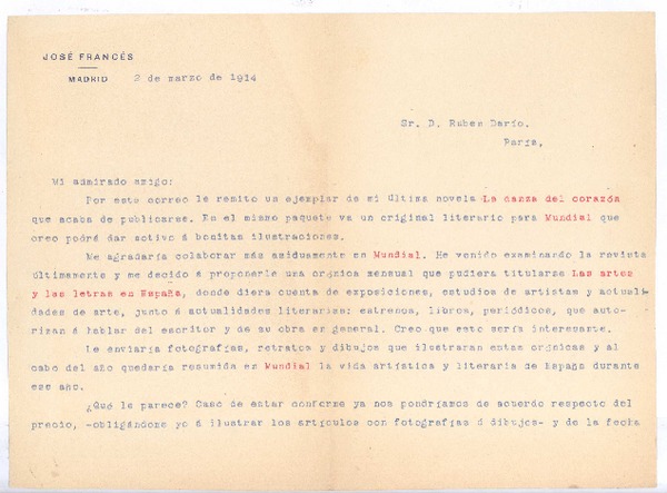 [Carta] 1914 marzo 2, Madrid, España [a] Rubén Darío [manuscrito] José Francés.