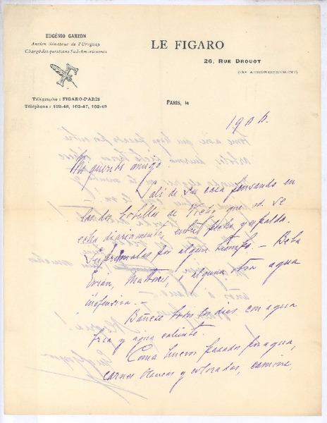 [Carta], 1899 jul. 4 Francia <a> Rubén Darío [manuscrito] Julio Piquet.