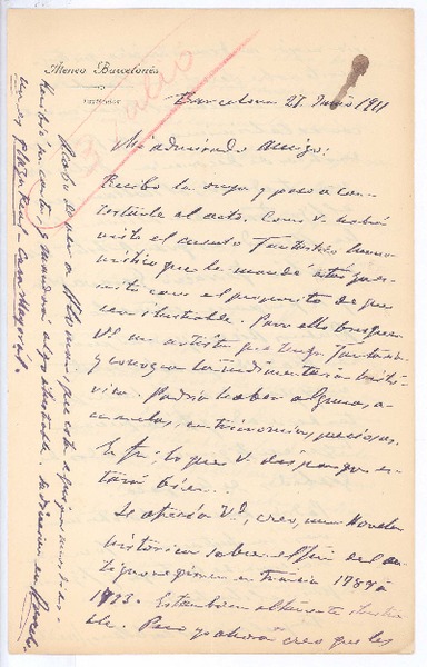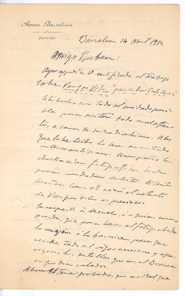 [Carta], 1893 jul. 14 Barcelona, España <a> Rubén Darío [manuscrito] Antonio Rubio y Lluch.