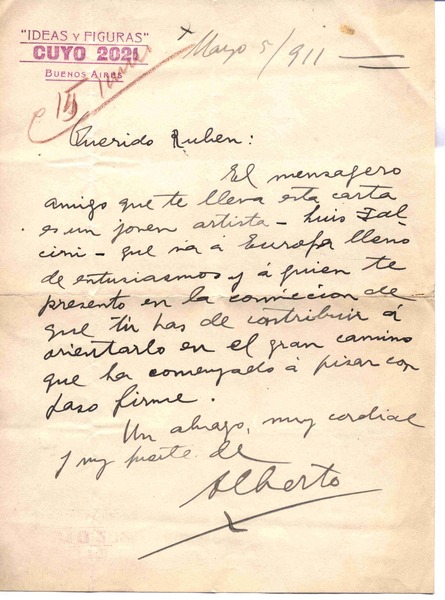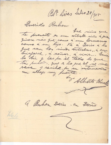 [Carta] 1905 julio 24, Buenos Aires, Argentina [a] Rubén Darío [manuscrito] Alberto Ghiraldo.