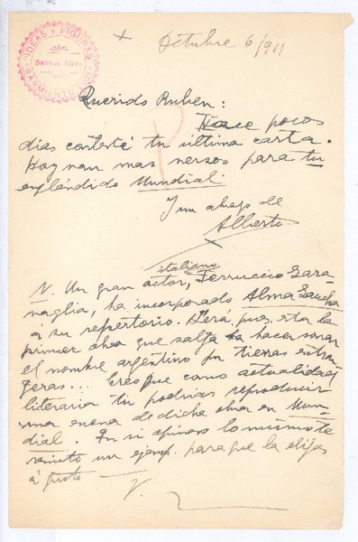 [Carta entre 1900 y 1916], Argentina? <a> Rubén Darío y Roberto Payró [manuscrito] Alberto Ghiraldo.