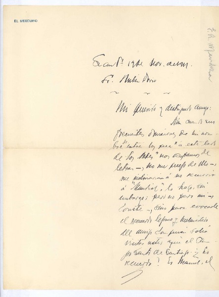 [Carta], c.1900 Madrid, España <a> Rubén Darío [manuscrito] Enrique Gómez Carrillo.