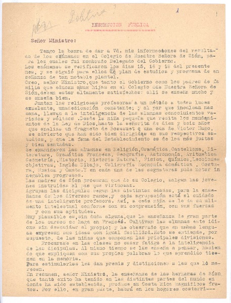 [Carta], 1891 Costa Rica <a Ministro de Nicaragua> [manuscrito] Rubén Darío.