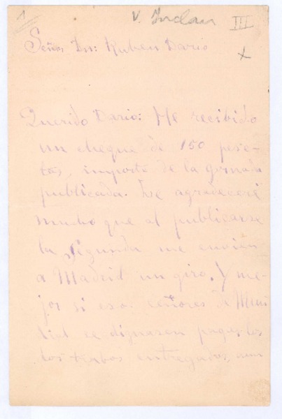 Valle-Inclán, Ramón del - CORRESPONDENCIA - Manuscritos españoles - Poetas nicaragüenses - Autores españoles - Correspondencia - Darío, Rubén
